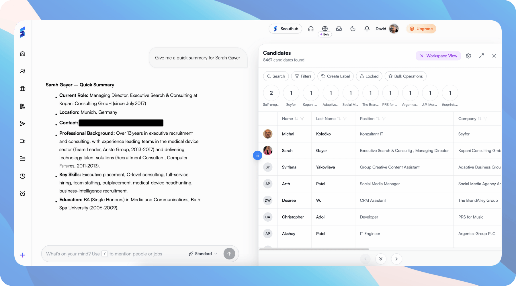 Rich candidate profiles with job history and role data. Search with AI beyond just keywords and turn your talent pool into real opportunities.