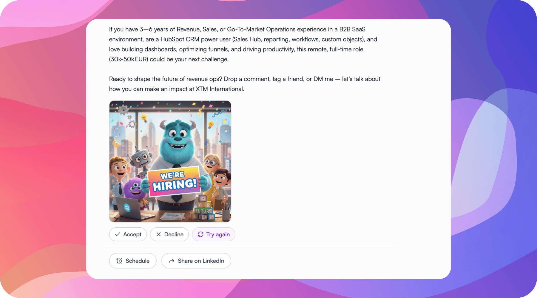 Plan, schedule, and share LinkedIn posts. Generate images with AI and share with one click from your todos.